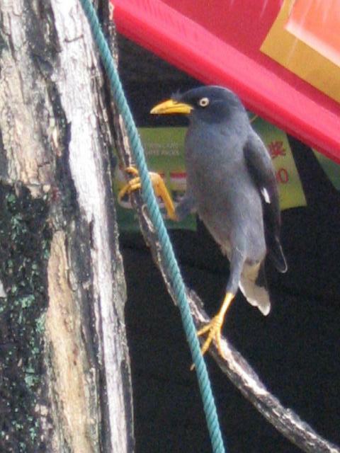 街中でみかけたカラス。黄色いくちばしでいっしょうけんめい木の間をほじっているのがかわいかった。