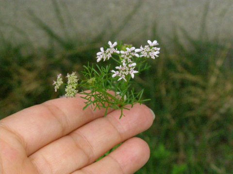 パクチーの種をまいといたら、自然に生えてきた野良パクチー。