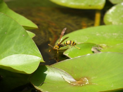 スイレンに蜂が来ました。アシナガバチかな?