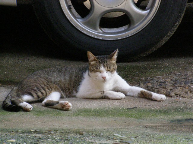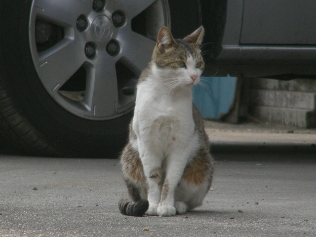 これはおなかの大きな通りすがりの猫。どこで産もうかなぁ?